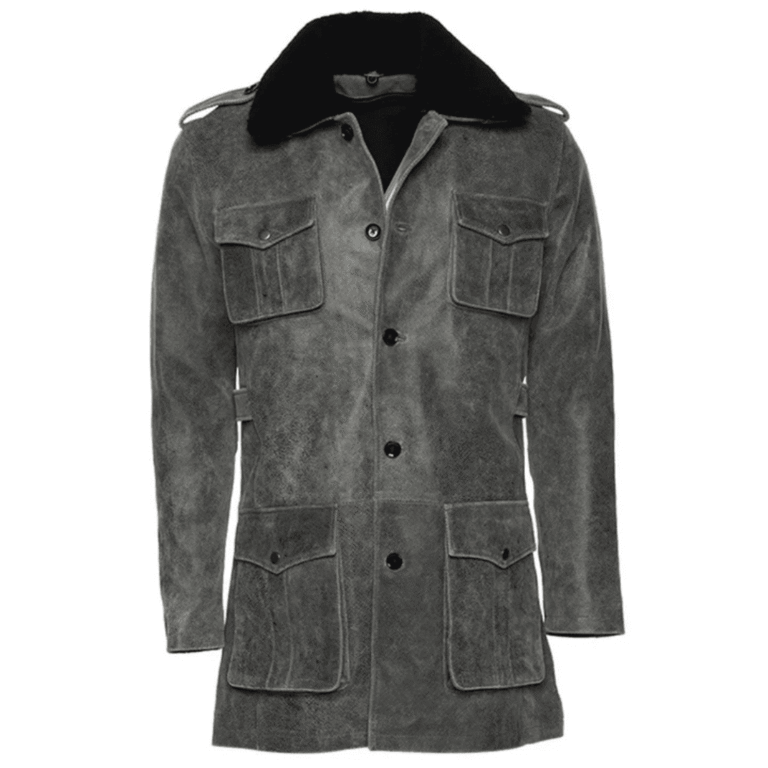 Ryder vintage grey leather coat with fur collar