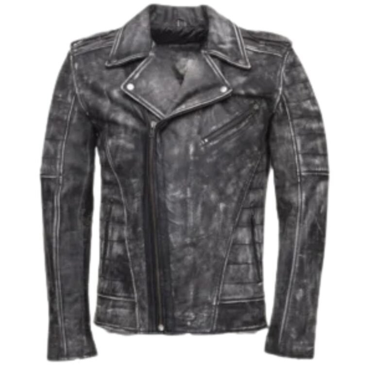Miles stone wash biker leather jacket
