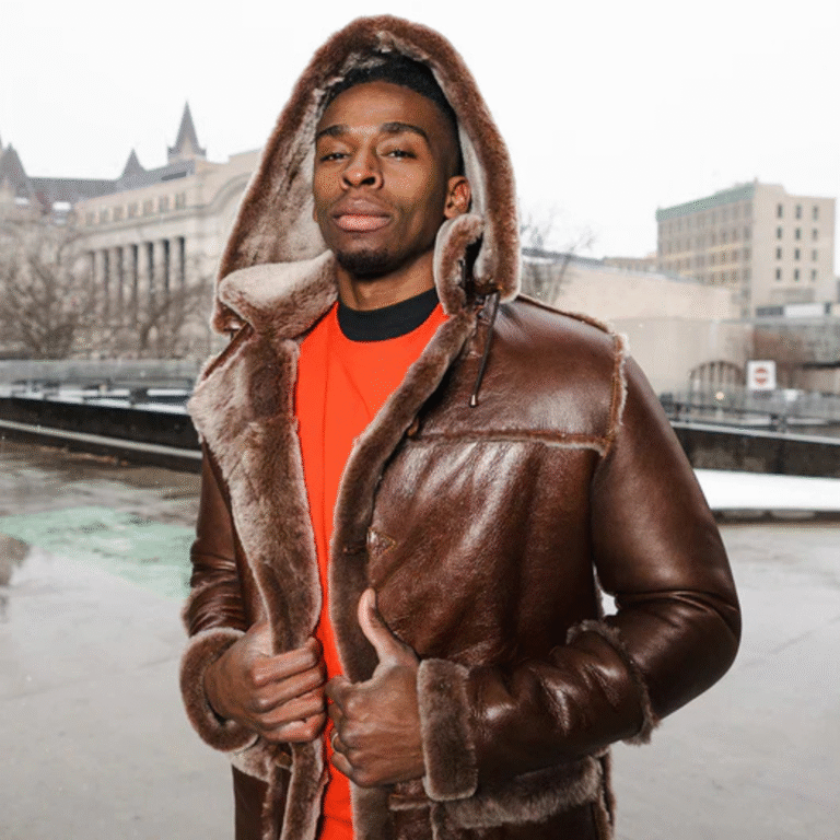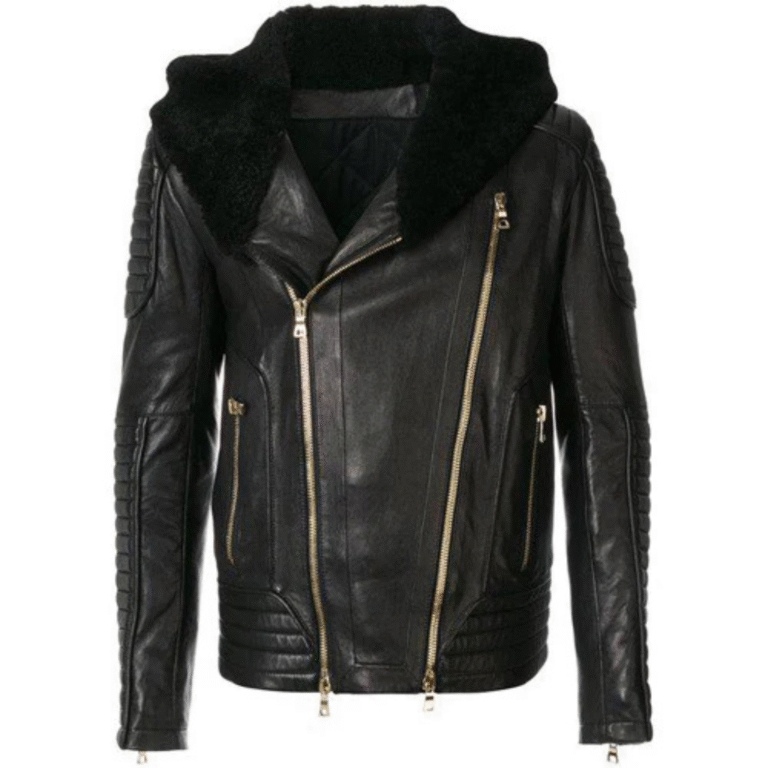 Gregos Varsity Style Sheepskin Shearling Jacket with Large Hoodie