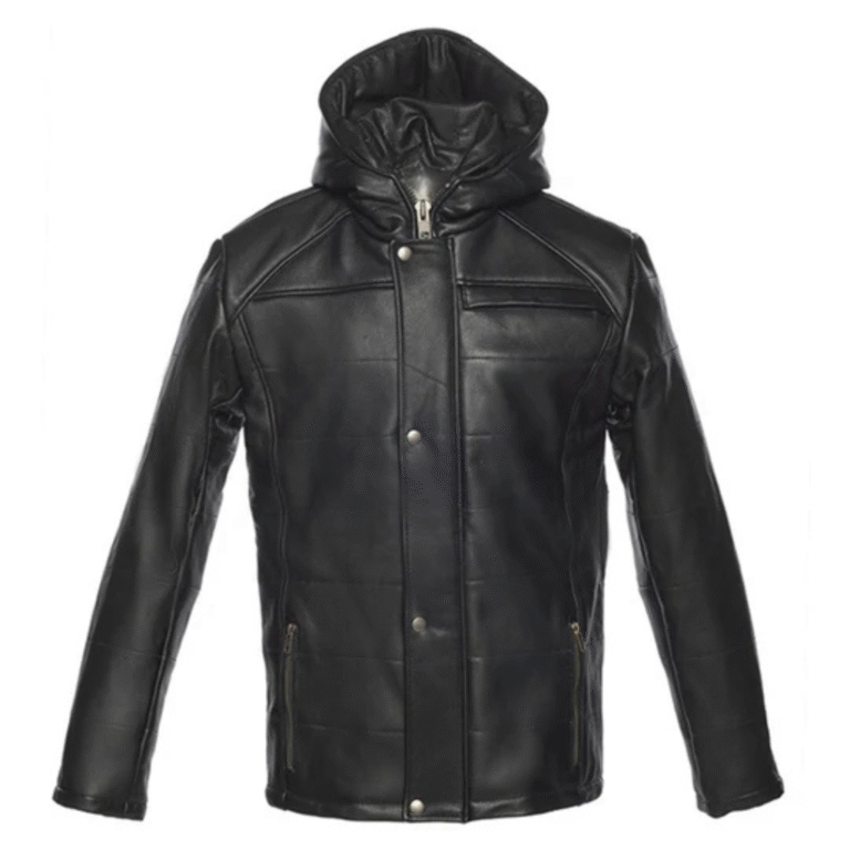 Joel quilted puffer winter leather jacket with diamond stitching and fur hoodie