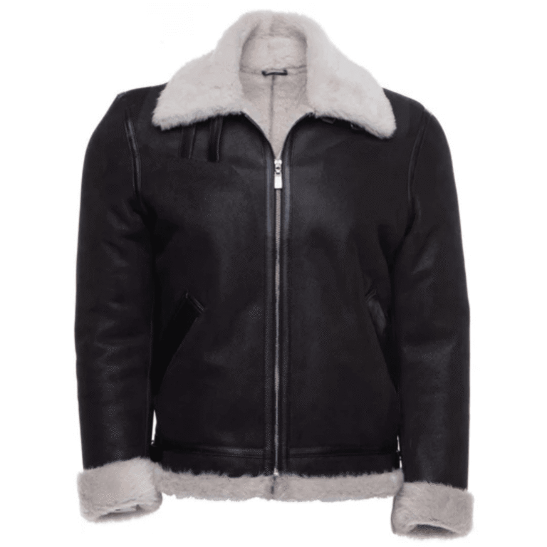 Hampton’s Classic Brown B-3 Bomber Aviator Shearling Jacket with collar belt