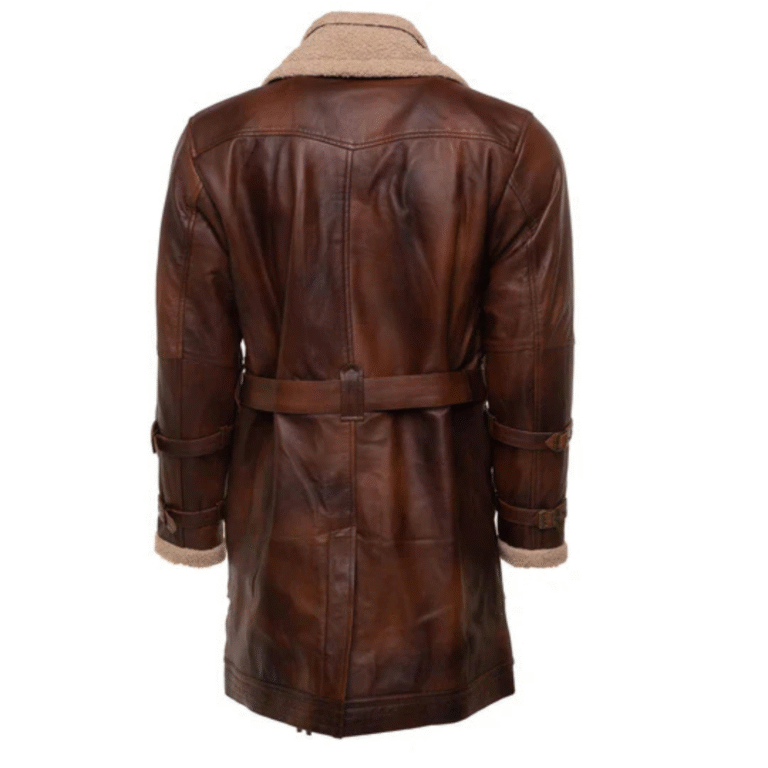 Vintage Rust 3/4 Leather Trench coat with Sherpa Lining