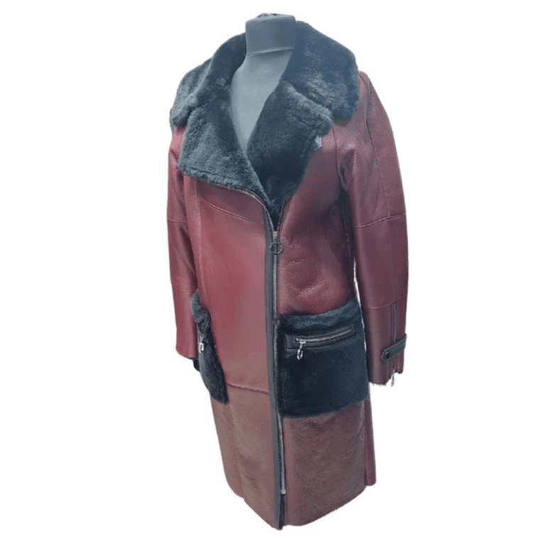 Samira’s burgundy shearling trench coat
