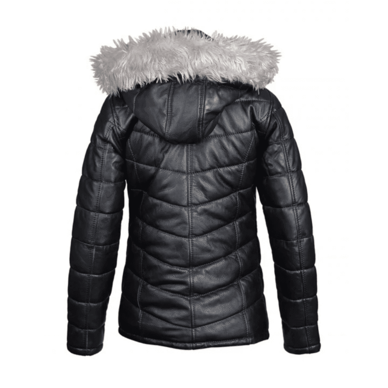 Snow’s Winter Puffer Leather Jacket With Fur Trimmed Hoodie