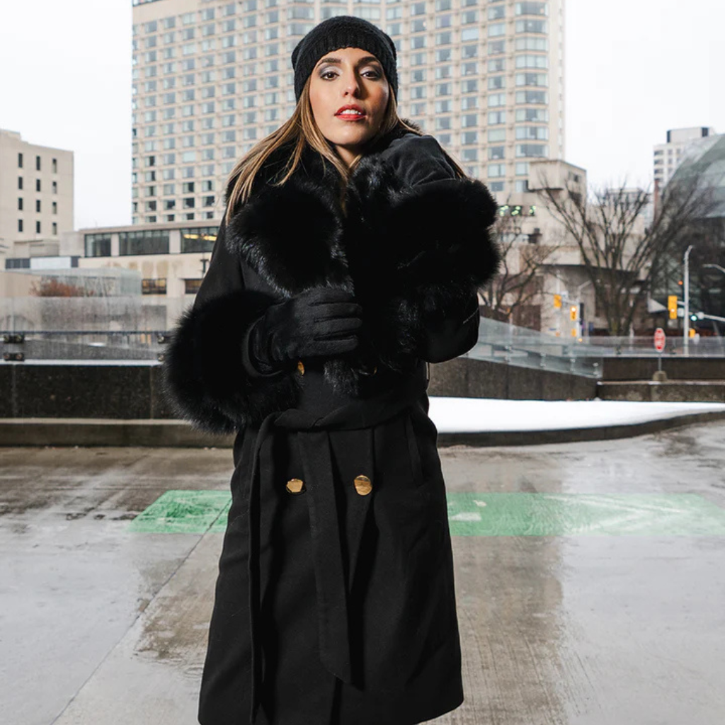 Be the first to review “Aria Black Chic long cashmere blend coat with fox fur” Cancel reply