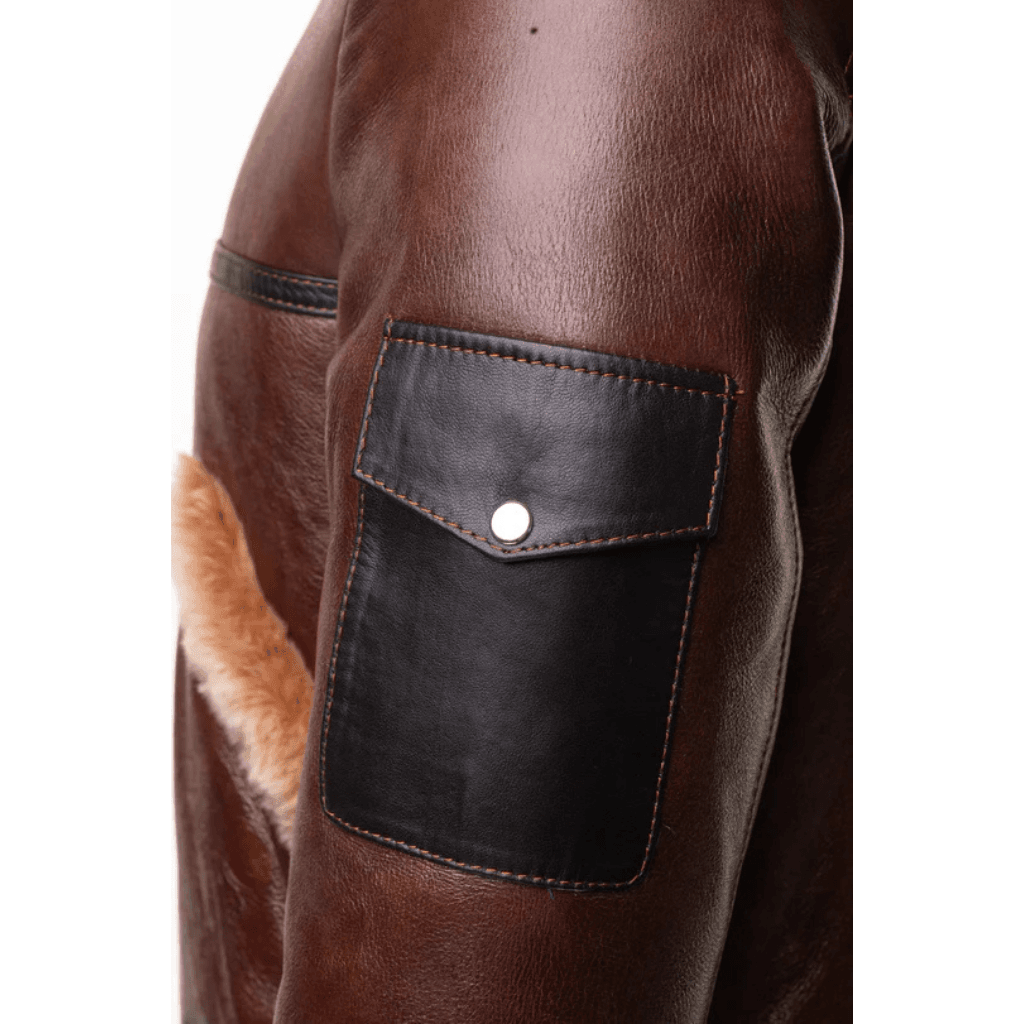 Esa Brown Bomber Sheepskin Shearling Jacket with large pockets