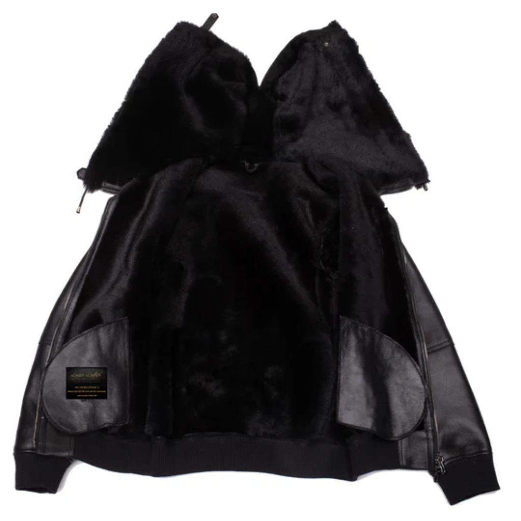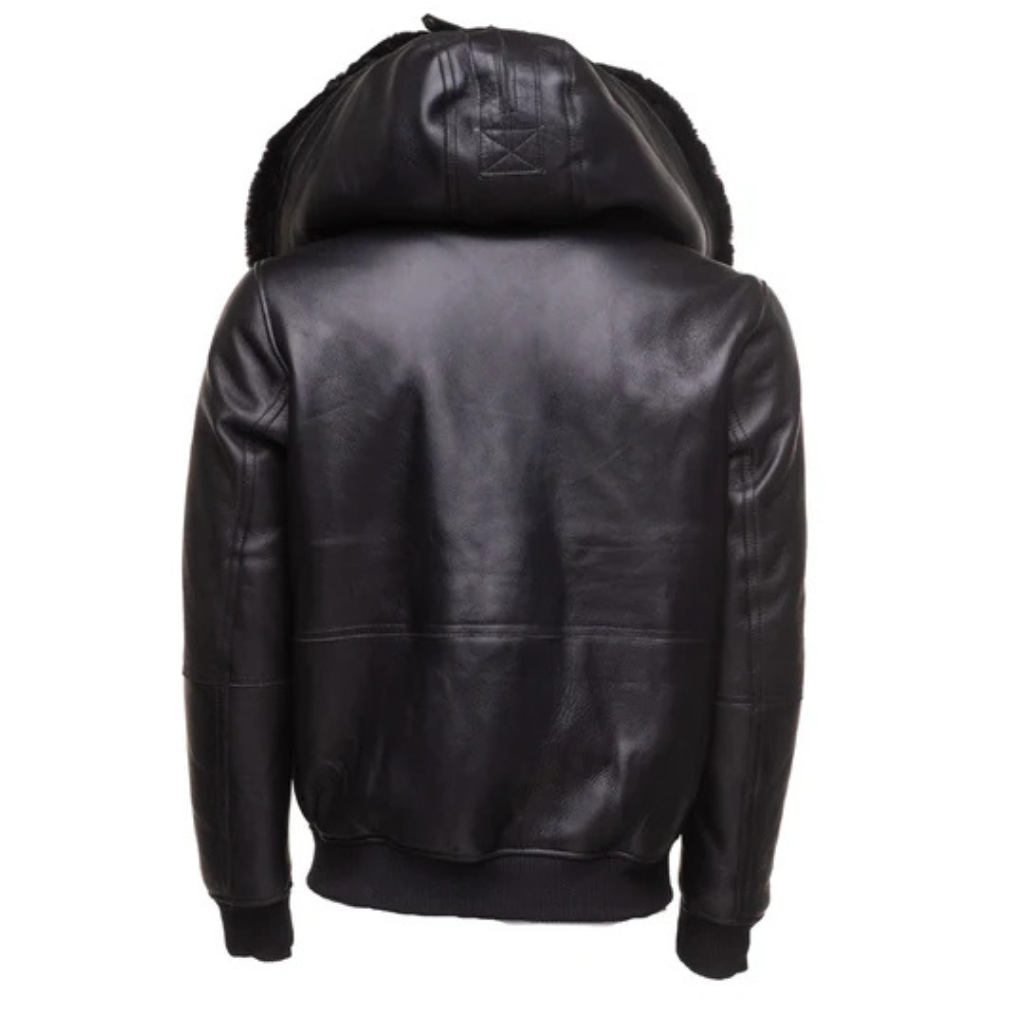 Gregos Varsity Style Sheepskin Shearling Jacket with Large Hoodie