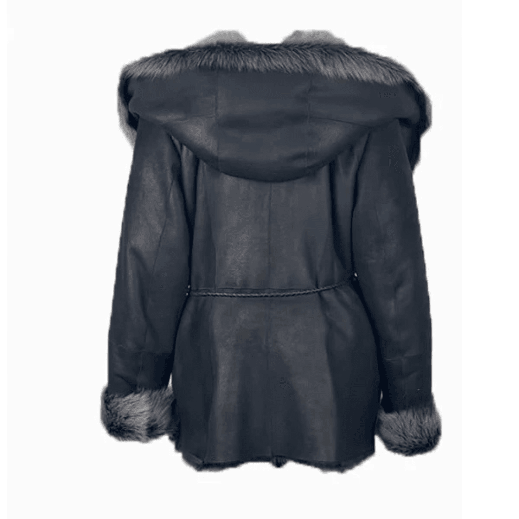 This season, discover the Michelle Toscana Shearling Jacket with Hood. A winter essential that combines opulent warmth with rustic charm. For a versatile look, the jacket, named Michelle , comes with a corded tie belt. Featuring raw edges and a silky hood for extra comfort, this jacket is meticulously crafted from Spanish Toscana shearling renowned for its plush loft and radiant shine. A perfect blend of luxury and functionality, this Michelle Toscana Shearling Jacket fits snugly with the hood up during extra-chilly weather and can be left open as the weather warms up.