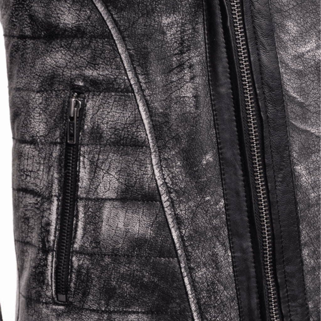 - Details : Distressed finish on leather, Shoulder epaulettes