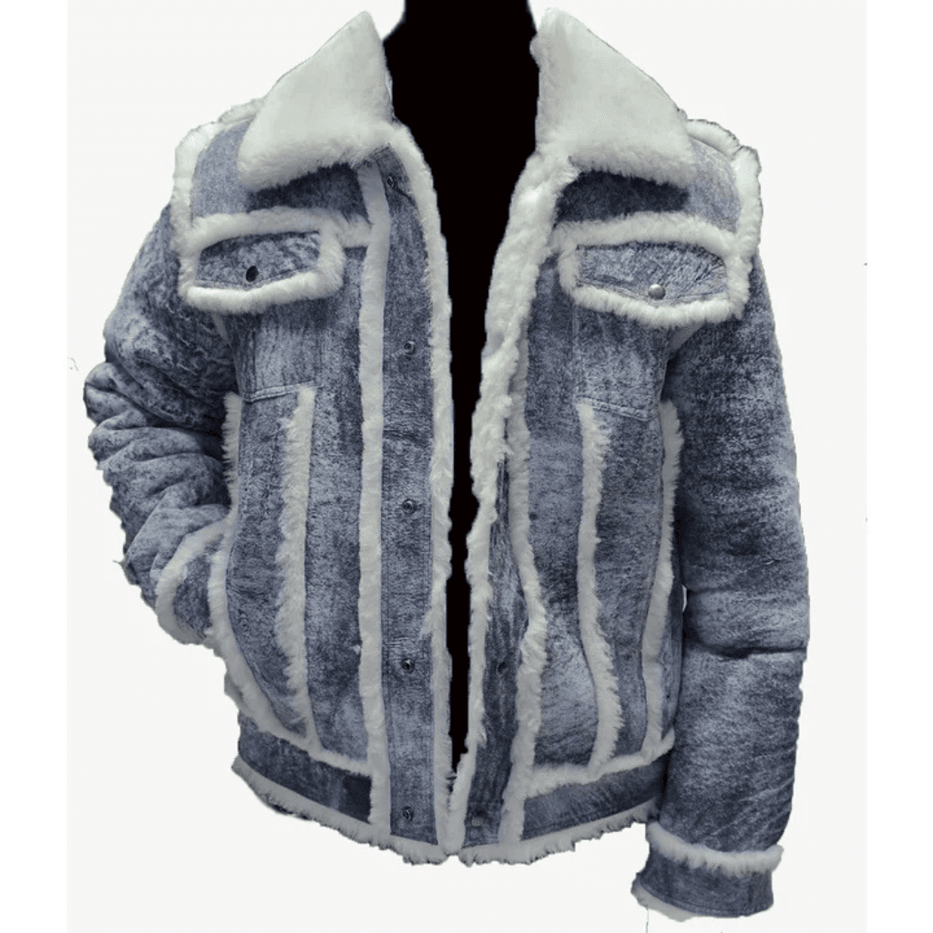 Aiden’s Distressed Grey Shearling Trucker Jacket