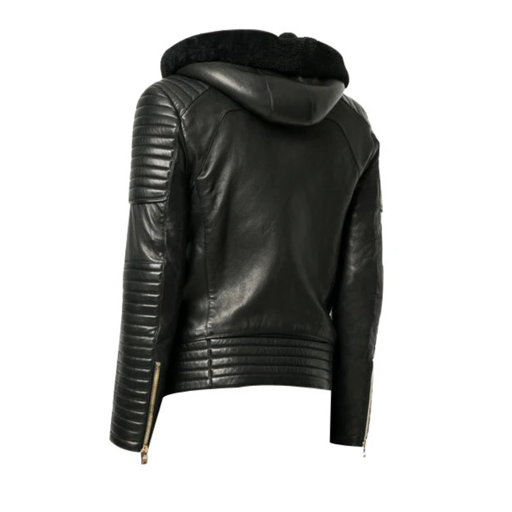 Add a touch of elegance to your outfit with this chic Sundown Biker jacket with fur hoodie. It has been made with full-grain leather material in a ravishing black color. The faux fur with hoodie, zipper closure, and open hem zipped cuffs adds too much grace to give a moto vibe to this slim-fit attire. The jacket is designed for an optimized men’s fit. It’s incredibly fashionable and comfortable, making it the ideal accessory for urban biking and other adventurous outings.