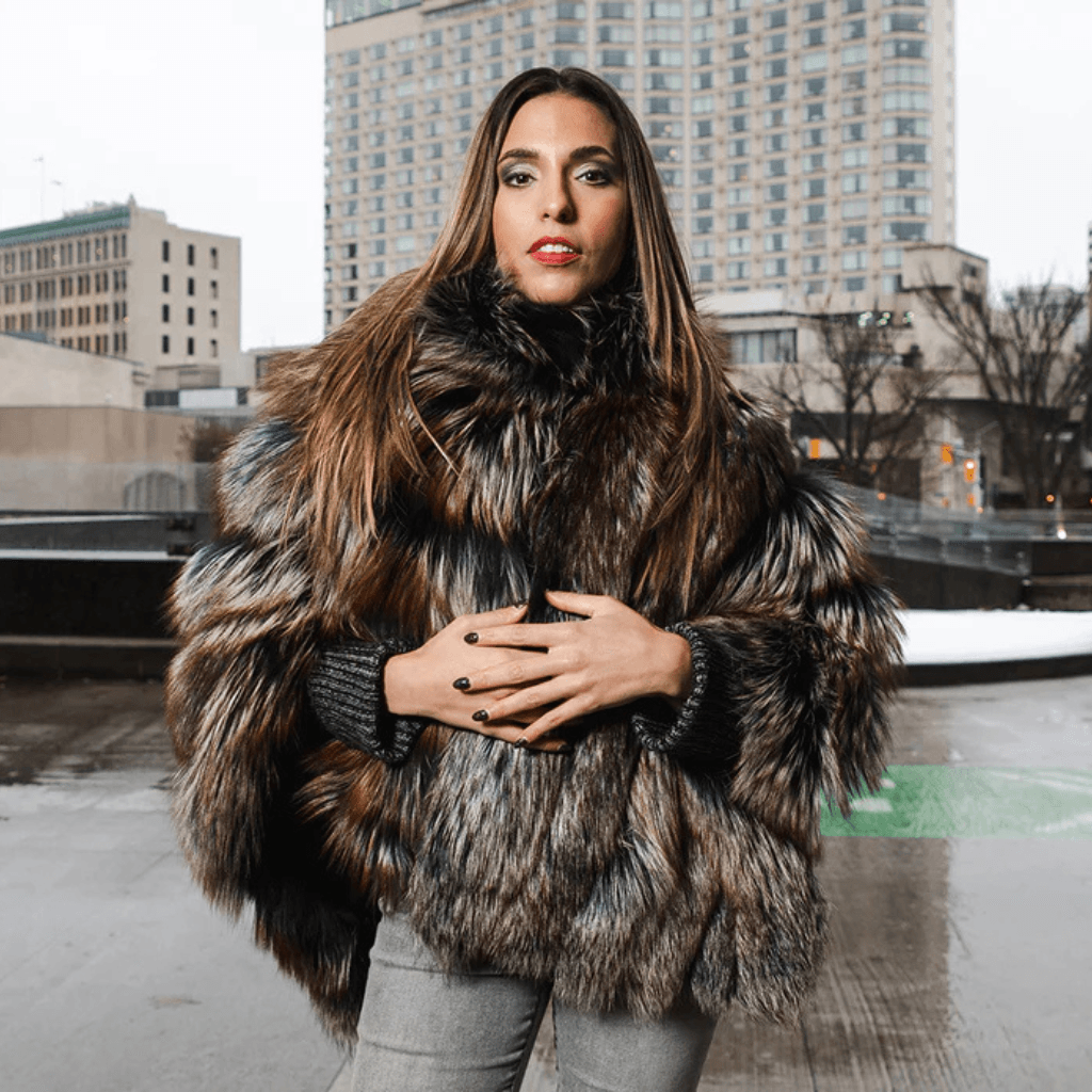• Outer Shell: Made with 100% Crystal Fox Fur